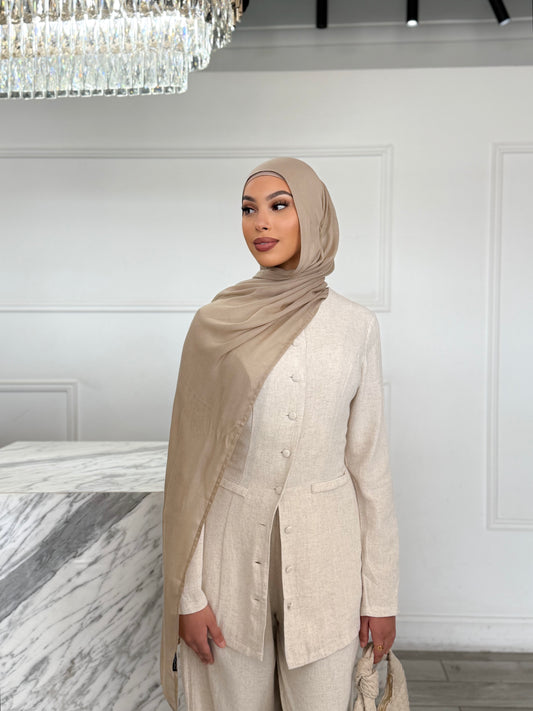 Made from custom blend viscose, our hijabs are finely woven making them lightweight, soft and effortless. A double stitched edge was added for extra durability. Our hassle free hijab sets come with a matching cap making it easy to compliment every outfit.
