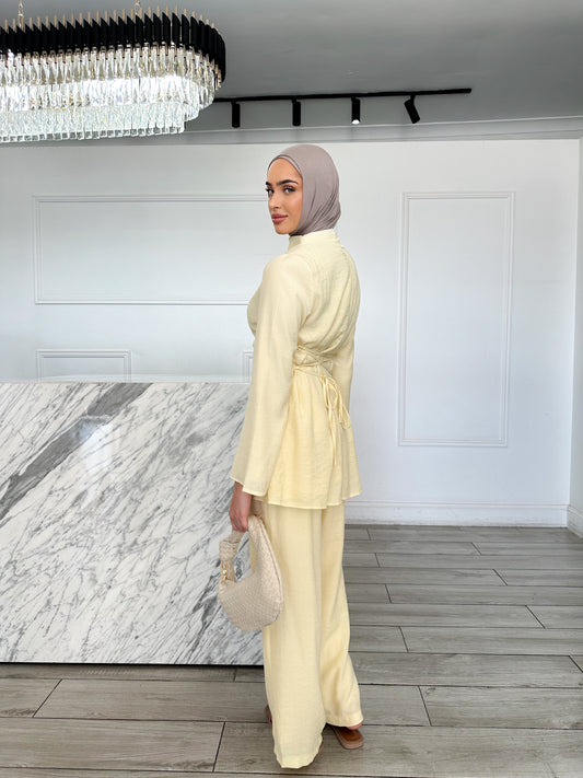 If you loved our Becka Dress, you’ll adore the Becka Set. Crafted from the same beautiful fabric and fully lined for comfort and quality. The set features a flattering lace-up back top and matching pants with an elastic waistband for the perfect fit. Effortless, feminine, and perfect for summer days or dressed-up nights.