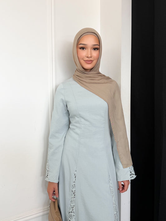 The Mirelle Dress is elegance made effortless. Designed with delicate crochet detailing for a soft, feminine finish, it features a flattering silhouette with a secure zipper back and adjustable lace-up detailing for the perfect fit. A timeless piece for special moments and elevated everyday wear.